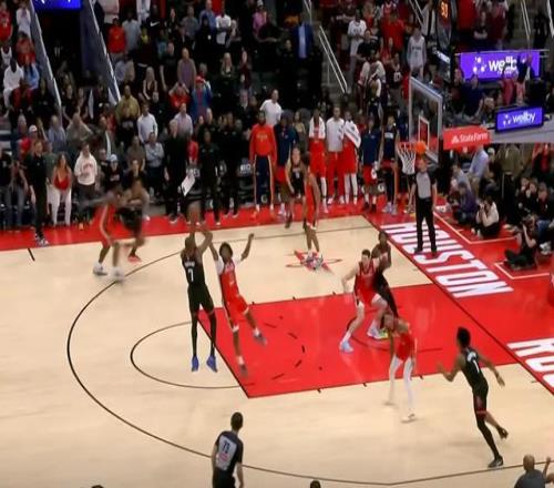 杜兰特第一时间没接到球,边线球发给小贾之后,杜兰特才接到球,没有给鹈鹕上来包夹的机会,杜兰特接球转身,两次运球来到罚球线位置,无视赫伯特-琼斯的防守干拔跳投,准绝杀命中,火箭反超。