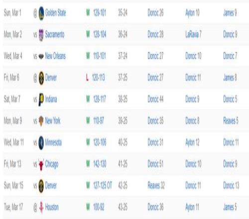 东契奇这场比赛40分钟,27中14,三分12中4,罚球5中4,拿到36分6篮板4助攻2抢断4失误,命中率51.9%,三分命中率33.3%,真实命中率61.6%,正负值+6。湖人全队才100分东契奇一人占比全队36%已经非常恐怖。
