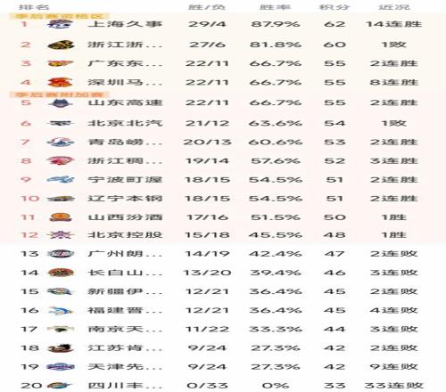 CBA最新积分榜