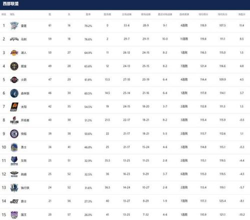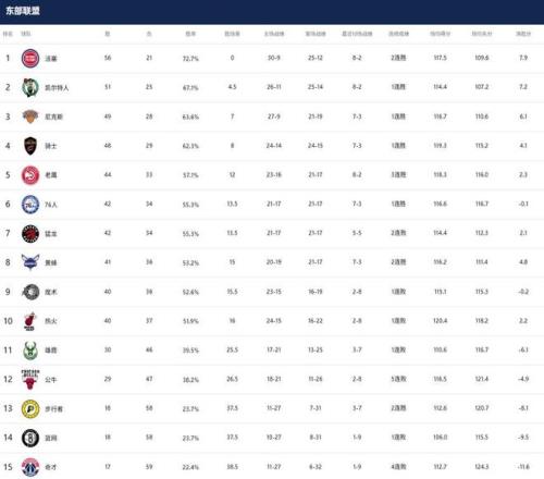 NBA最新排名:
