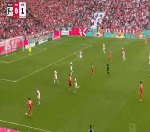 第37分钟,路易斯·迪亚斯横传,阿方索·戴维斯点球点附近折射破门,拜仁3-1斯图加特。