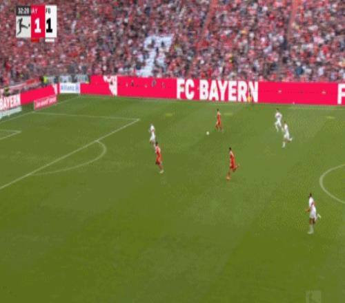 第33分钟,路易斯·迪亚斯接队友直塞,一路向前推进至禁区内横传,杰克逊推射得手,拜仁2-1反超。