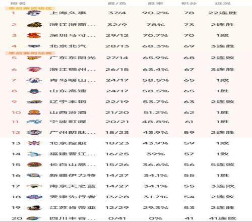 CBA最新积分榜