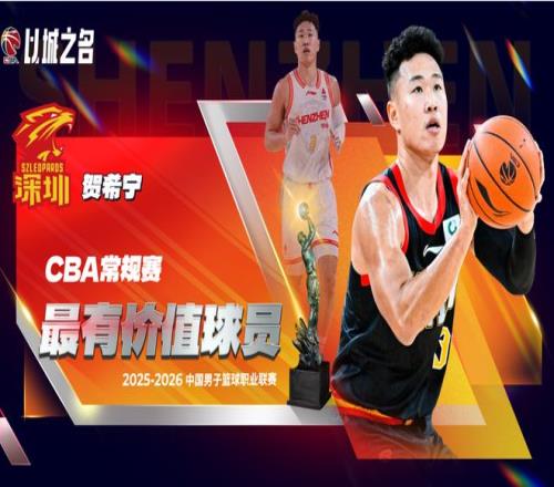 昨天,CBA公司公布了常规赛各项单人大奖,来自深圳队的球员贺希宁,拿到了一个超级大奖,没错,那就是2025-26赛季CBA联赛常规赛最有价值球员,常规赛MVP!在此,也是恭喜贺希宁!