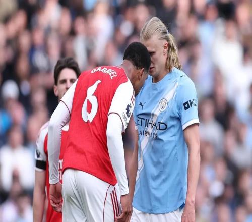 蒂姆-舍伍德认为,埃尔林-哈兰德在周日与加布里埃尔-马加良斯头碰头冲突后没有倒地,等于是保住了阿森纳的争冠希望。这场榜首大战多次出现火药味,哈兰德与加布里埃尔延续两人长